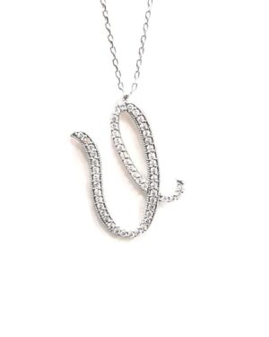 Büyük Boy Ş Harf Kolye Zirkon Taşlı | Gümüş Harfli Kolye