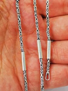 Zincir tasarımlar erkek bilekliklerinde en popüler modellerden biridir. Erkek zincir gümüş bileklik modelleri kalın, ince veya orta kalınlıkta üretilebilir.