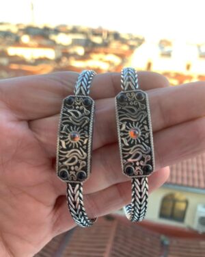 Mardin Hasırı El İşçiliği Güneş Sembollü Gümüş Erkek Bileklik